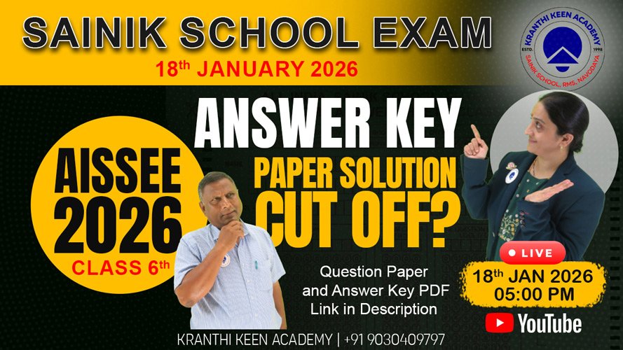 Kranthi Keen Academy, No1 coaching institute in Telangana for Sainik School Coaching, has prepared the unofficial answer key for AISSEE 2025. This initiative aims to assist candidates in gauging their performance before the official key is released.